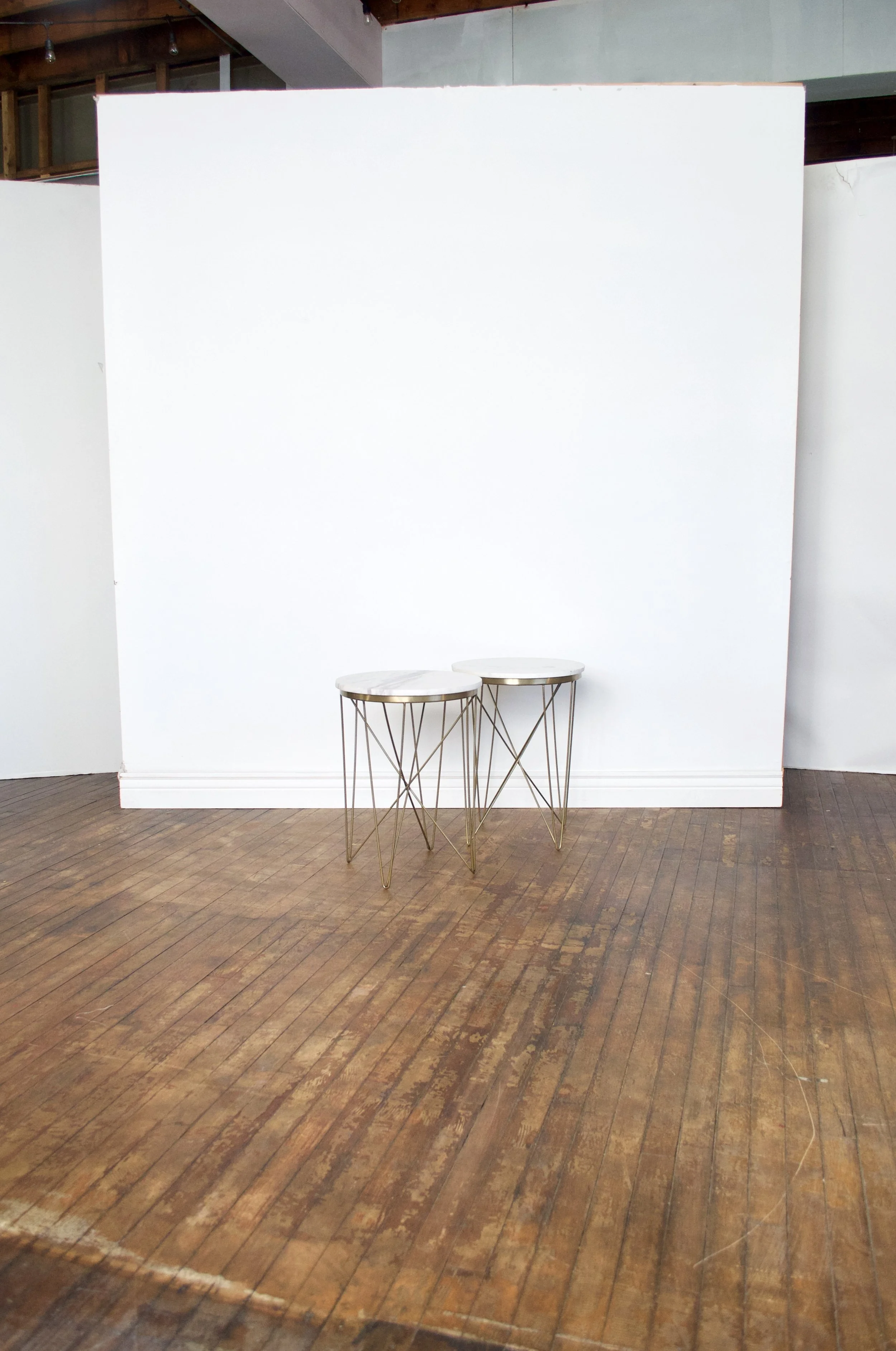 Our Marble Top Tables are round tables with white marble tops and wire legs. They pair with any of our furniture to add a modern touch.